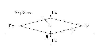 根据受力分析可得到如下结论:FC = FW + 2FP * sinα