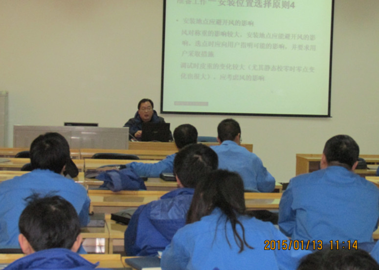 2015年1月13日我公司市场部陆总工、物联网部曹总及技术部谷经理在首钢培训中心给全公司50名皮带秤管理及维护人员进行理论和实践方面的培训。