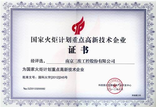 之前公司承担过2011、12年国家科技部火炬计划项目;新产品“高精度阵列式皮带秤”获得2011年国家新产品证书、2012年第十四届中国专业奖。先后承担各类重大项目5项以上,公司拥有软件著作权6项、授权获奖24项以上,其中研究6项,(含1项国际奖项),公司现已成长为江苏省信息化和工业化融合研发设计性企业。国家火炬计划技术企业这一殊荣的取得,为公司发展奠定了又一专业平台,依托这个技术平台,公司将能获得更多的发展机遇,技术工作必将迈上新台阶,公司必将取得更好的经营业绩。